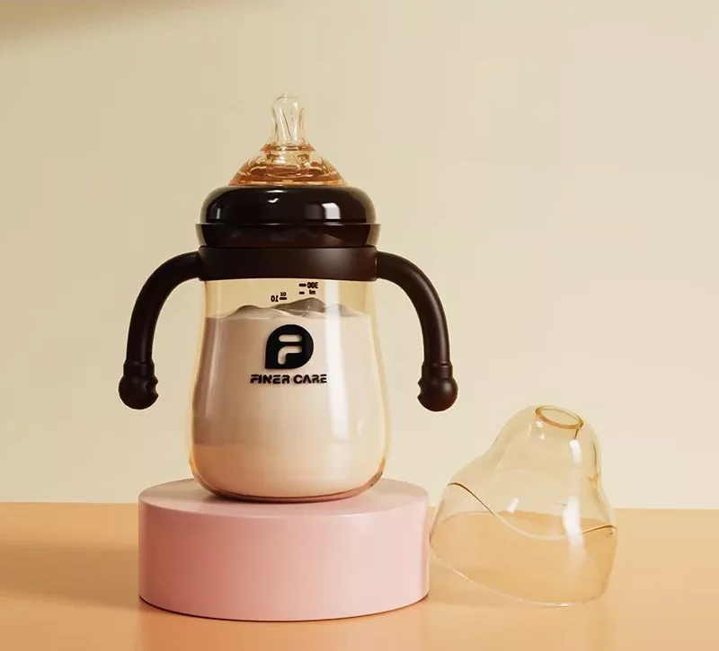 ขวดนมคอกว้าง สีชา จุกเสมือนนมแม่ พร้อมแขนจับ (10 ออนซ์)